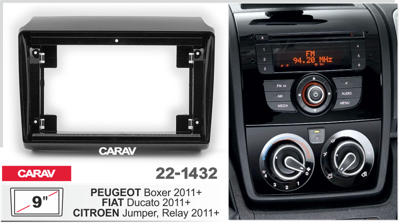 —CARAV 22-1432 | 9" переходная рамка Peugeot Boxer 2011+, Fiat Ducato 2011+ , Citroen Jumper 2011+