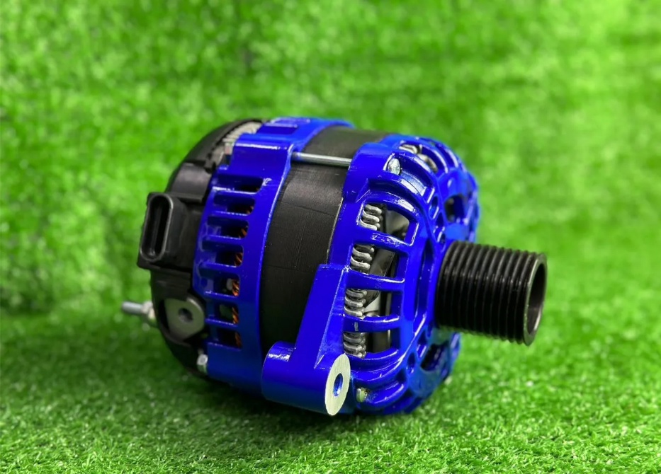 Корпус генератора окрашен порошковой краской в синий цвет. Установлен уменьшенный шкив, что увеличивает отдачу по току.