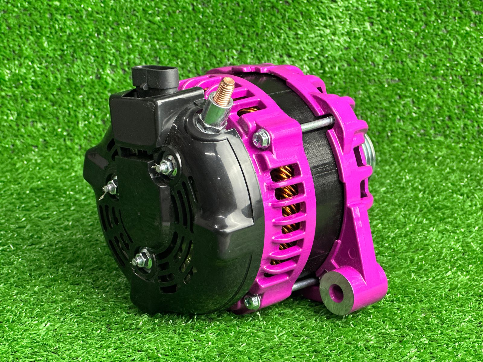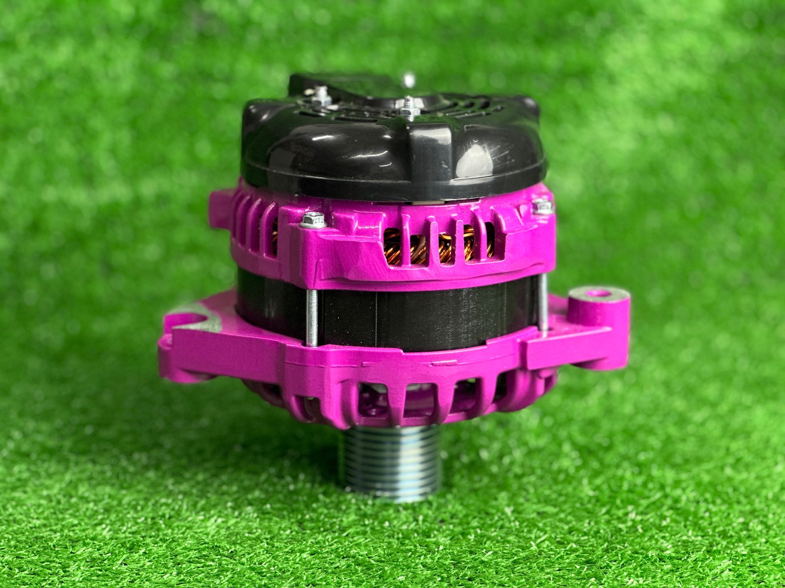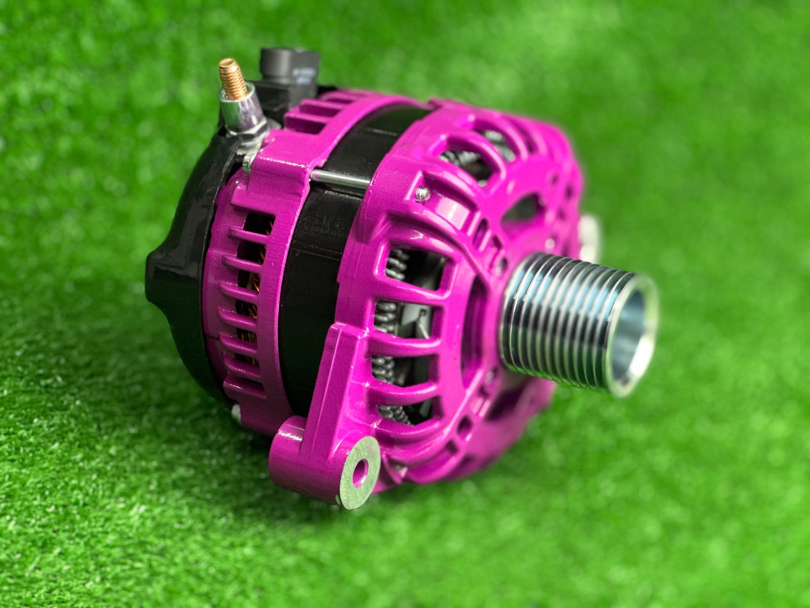 Корпус генератора окрашен порошковой краской в пурпурный цвет. Установлен уменьшенный шкив, что увеличивает отдачу по току.
