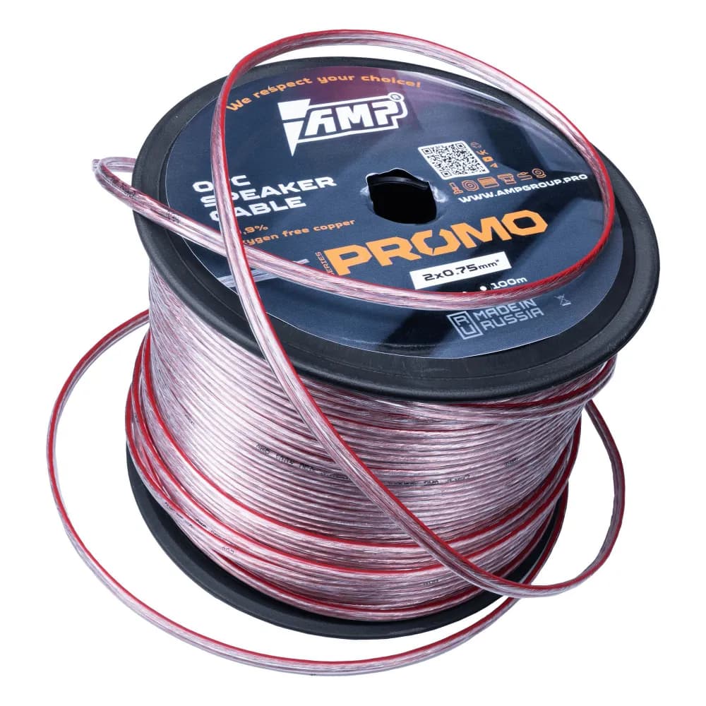 AMP PROMO 2х0.75 OFC - высококачественный акустический кабель из бескислородной меди OFC с сечением 2 x 0,75 мм². Кабель обладает высокой проводимостью и низким сопротивлением, обеспечивая качественное звучание акустической системы автомобиля.